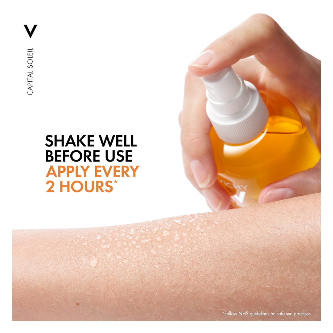 Vichy Capital Soleil Solar Protective Water - Enhanced Tan SPF30 will protect your skin from the damaging effects of the sun whilst helping you to achieve a natural-looking tan. Perfect for the face and body, the lightweight, fast-absorbing mist provides SPF30 broad-spectrum protection in a 40% Vichy Mineralizing Thermal Water formula for optimal hydration and high protection against UVA and UVB rays.