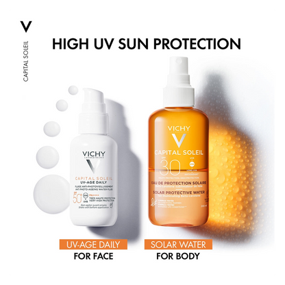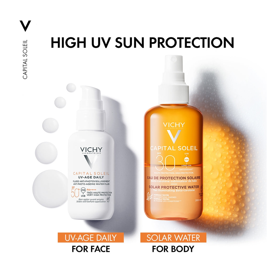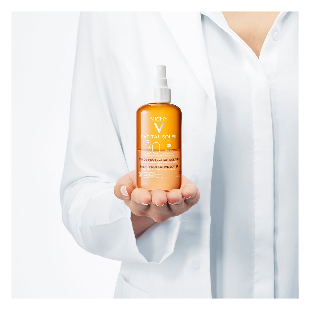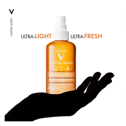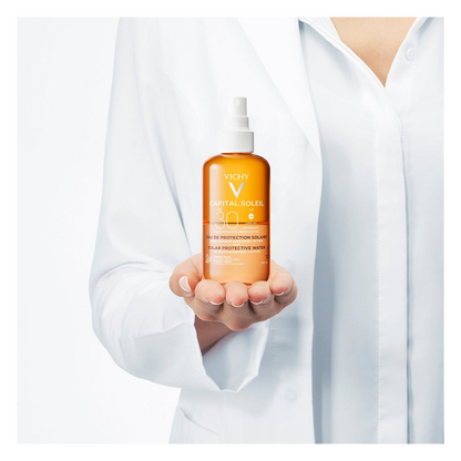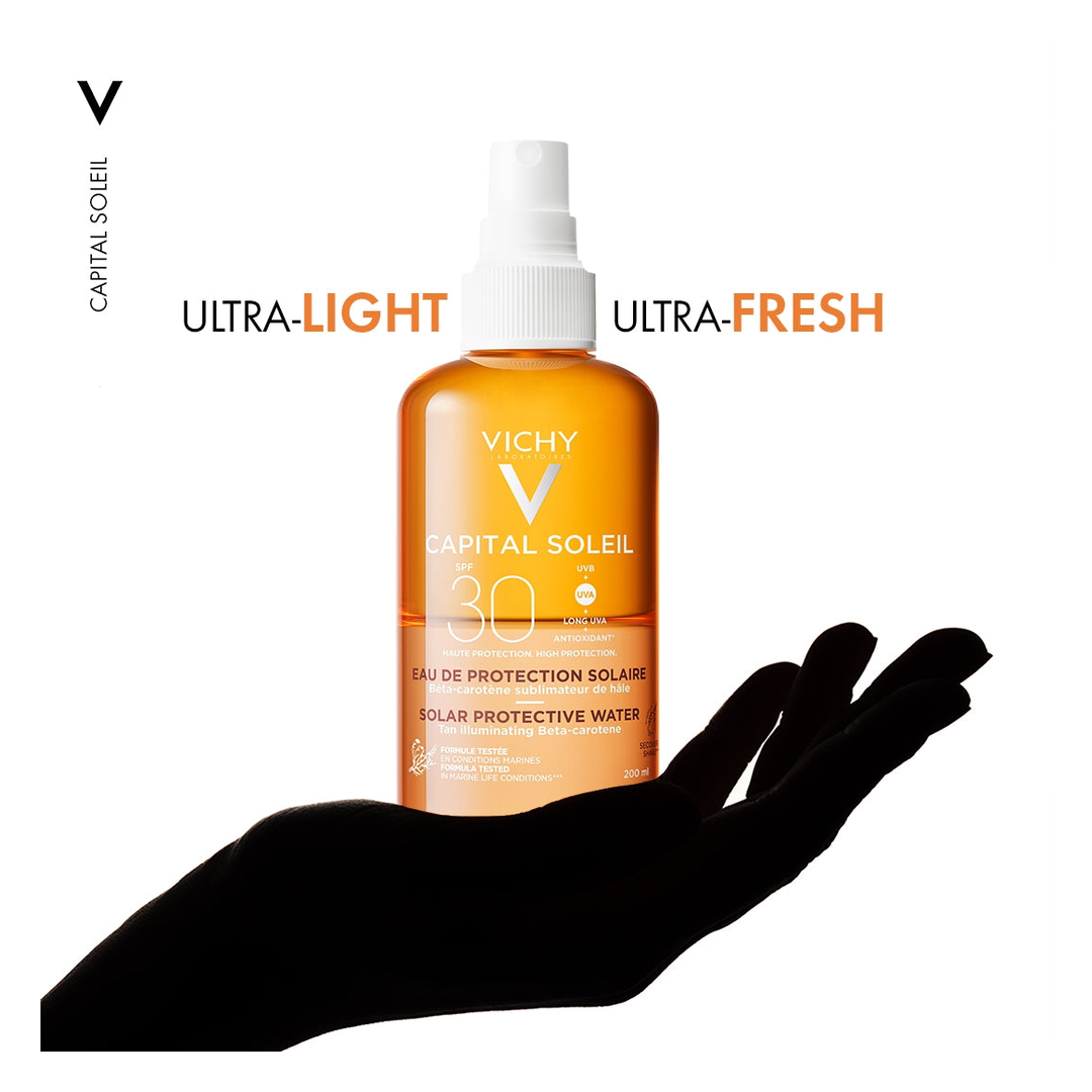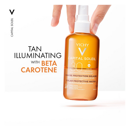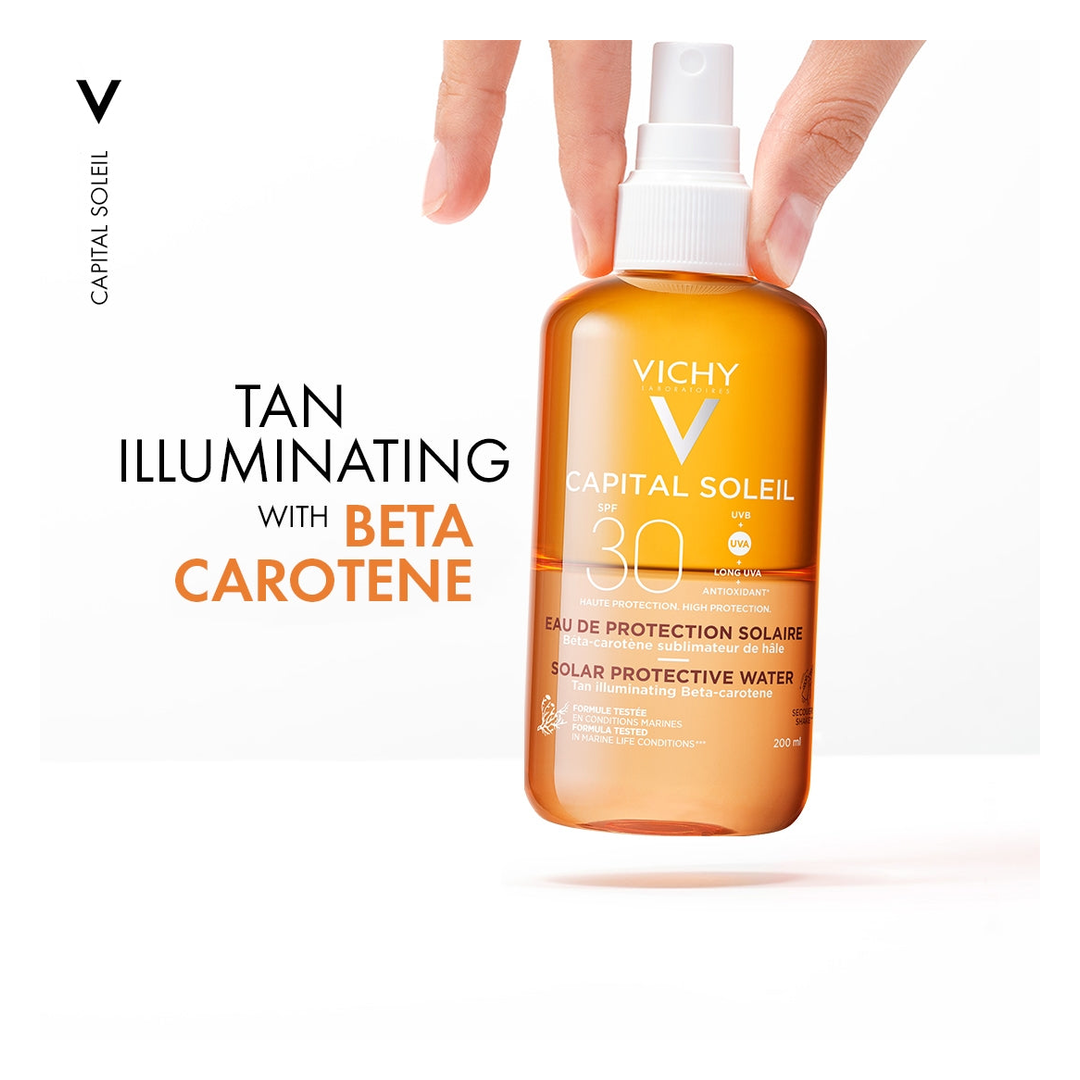 Boost the beauty of your tan with Vichy Capital Soleil Solar Protective Water - Enhanced Tan SPF30, an ultra-light solar protective water enriched with antioxidants.
