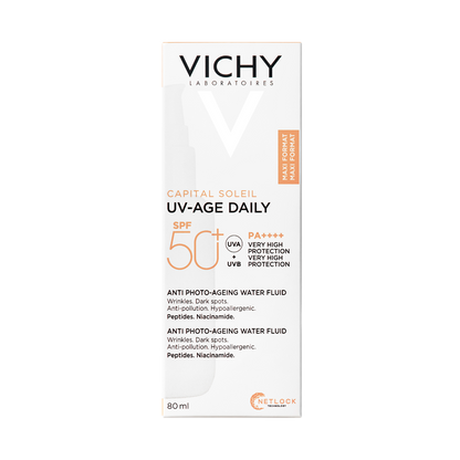 The main thing that really makes Vichy's UV Age Daily SPF stand out has to be its impressive, multi-patented Netlock technology; this technology works similar to a net as it anchors UV filters in a really lightweight film for even and invisible protection - that still feels weightless on skin. It offers very high SPF defence to keep skin protected against UVA and UVB rays, as well as the effects of ageing that these can cause.
