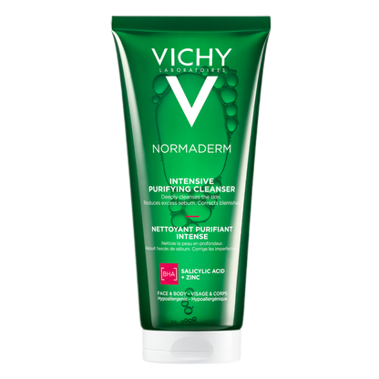 Cleanse and care for blemish prone skin with the Vichy Normaderm Intensive Purifying Cleanser Gel, a daily face cleanser formulated for oily and congested skin suitable for all skin types, including sensitive.