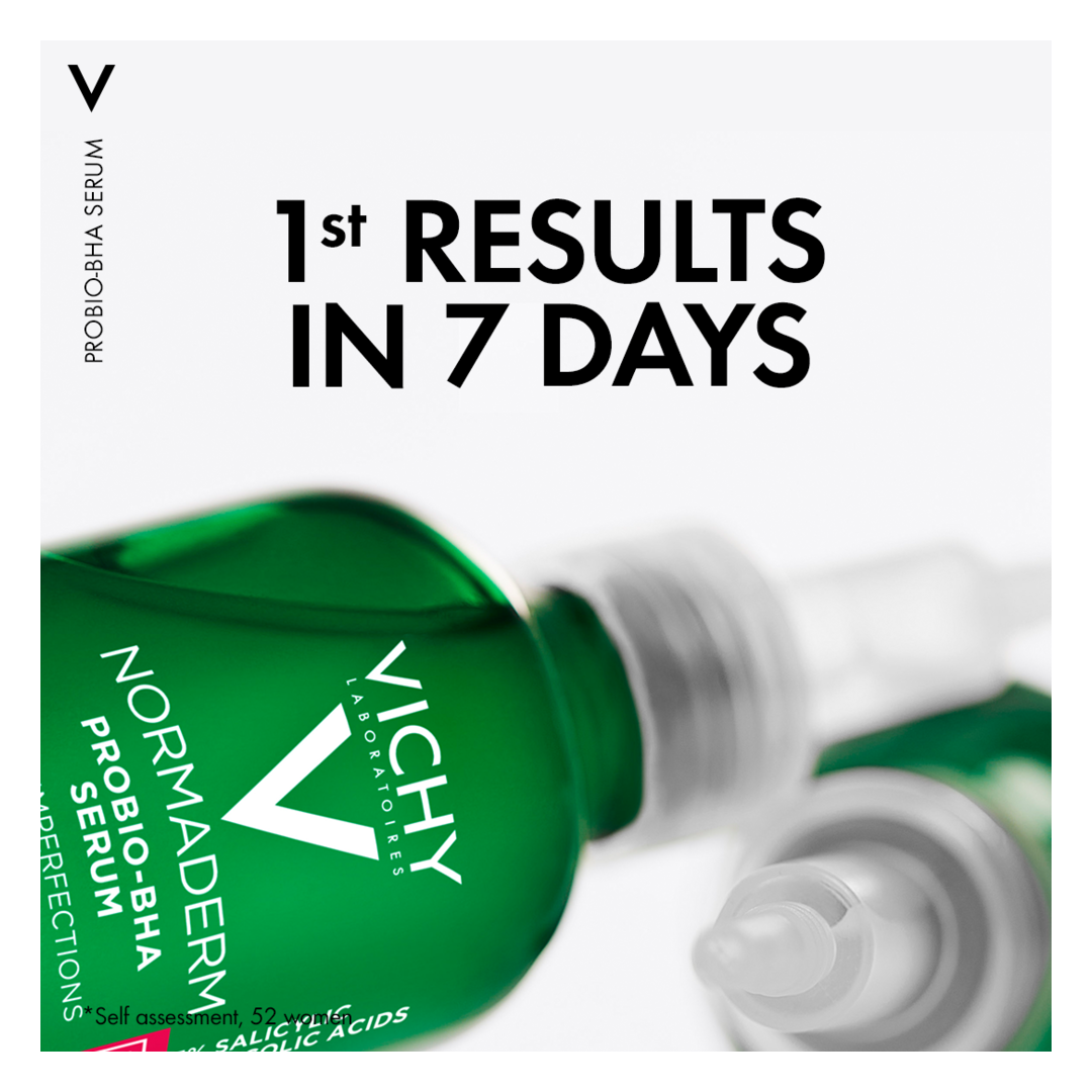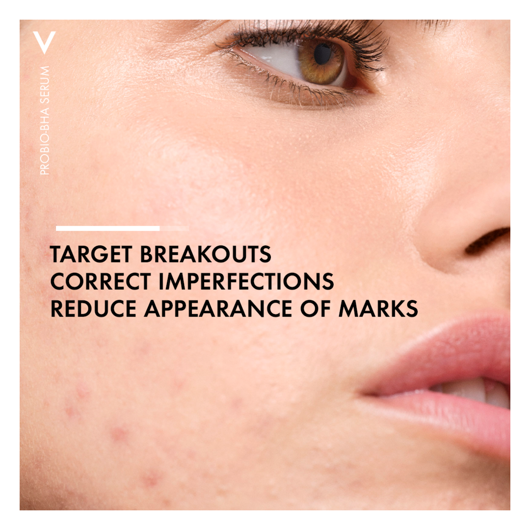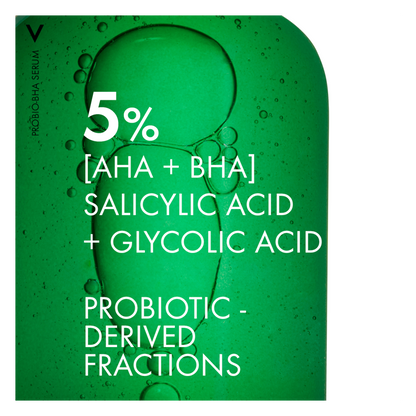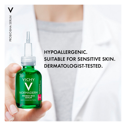Part of the best-selling Normaderm skincare collection for those aged 20-30s suffering from oily, acne-prone skin. Vichy's Probio-BHA serum combines a powerful synergy of ingredients for a three-pronged approach; an innovative balance of 5% salicylic acid and glycolic acids work to correct existing acne marks, target breakouts and smooth the skin's texture. All while 5% probiotic fractions strengthen the skin barrier and promote cell renewal for a healthy, radiant complexion. The probiotics and AHA/BHA's are gentle enough for even sensitive skin and is perfect for anyone with reactive and oily skin.