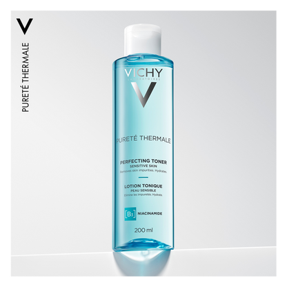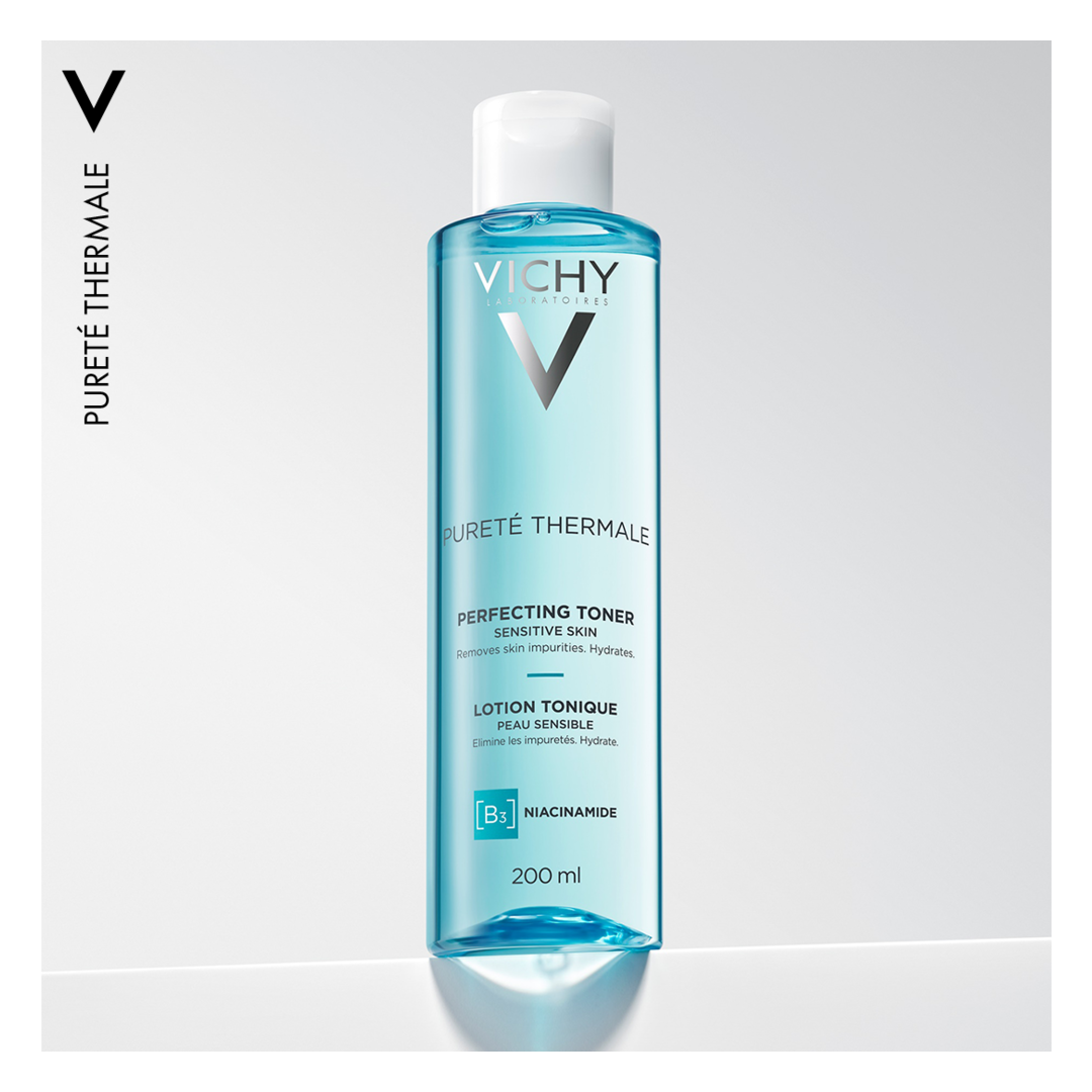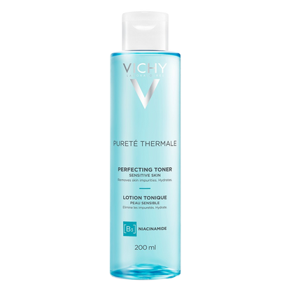 Regulate your complexion with the Vichy Purete Thermale Perfecting Toner, a refreshing formula.