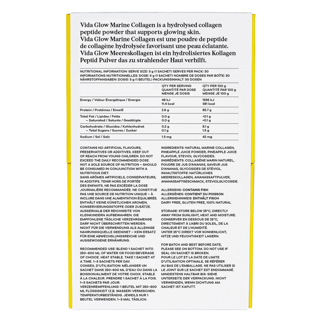 If you're looking to try marine collagen for the first time, why not start your journey to healthy, glowing skin, with the 'World's No.1 Marine Collagen Brand': Vida Glow. Their Natural Marine Collagen Sachets keep it simple with a minimal complex of marine collagen, real pineapple and natural sweetener for optimal potency and subtly sweet flavour.