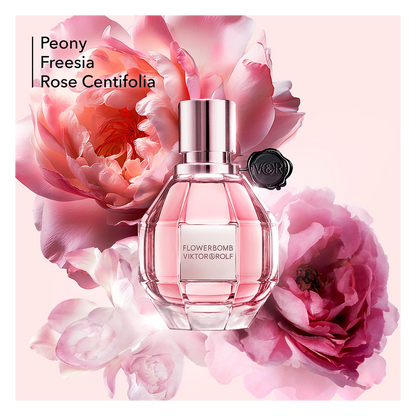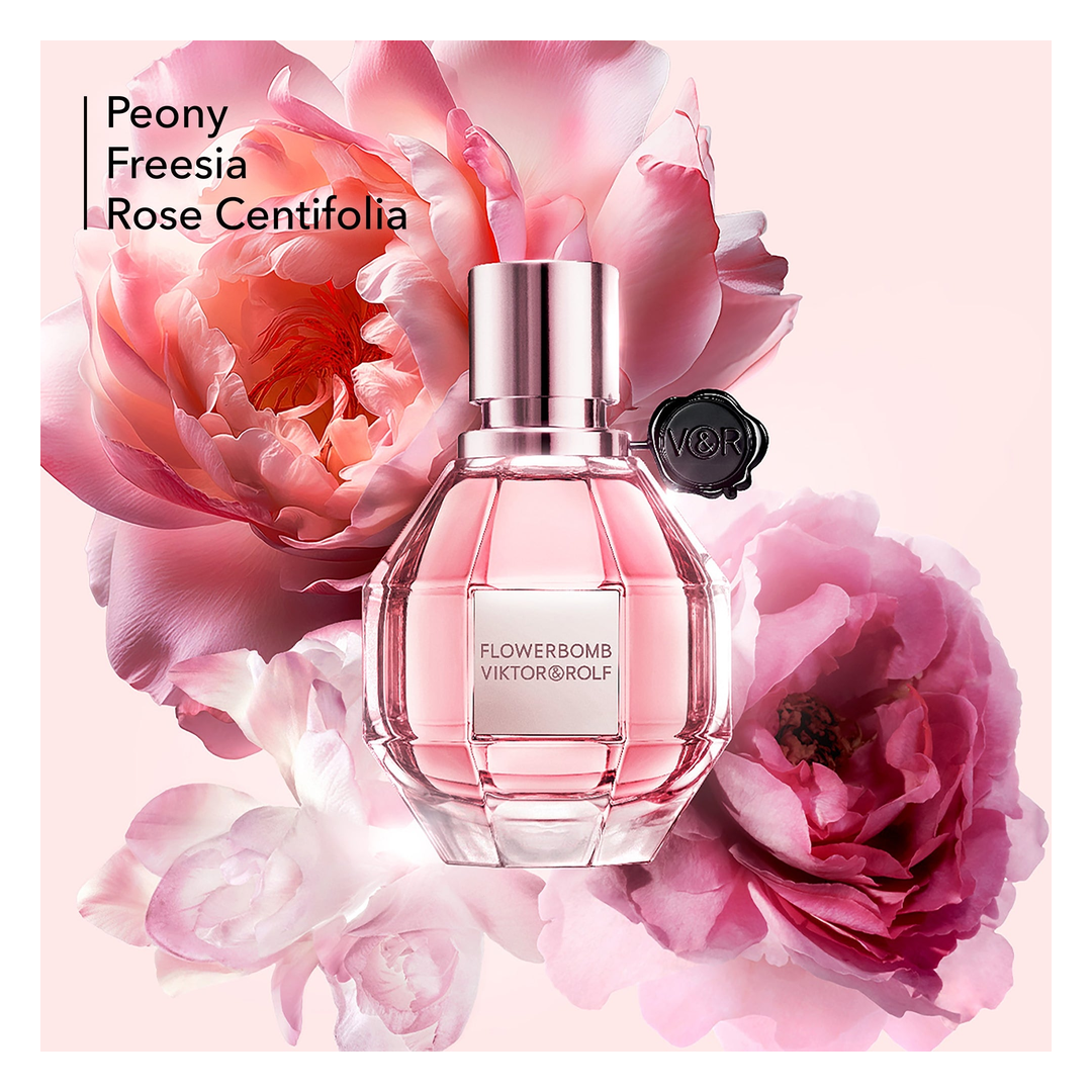 - Viktor & Rolf Flowerbomb Eau de Parfum Spray 100ml: As the diamond grenade bottle erupts into a whirlwind of sweet sensations, be engulfed by Flowerbomb’s addictive floral notes and immerse your senses with the warm woody undertones. Experience a sparkling blend of top notes, with modern Tea, refreshing Bergamot, and feminine Freesia developing into a floral heart of Sambac Jasmine, Cattleya Orchid and Centifolia Rose. This floral bouquet dries down to woody base notes of Amber and Patchouli, for a seductive yet fresh perfume.