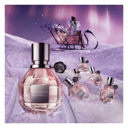 Unveil the magic of the holidays with Viktor&Rolf’s Flowerbomb gift sets. Transformed with an elegant and enchanting pattern inspired by haute-couture materials, these sets are a true spectacle. Silver embossed snowflakes and delicate flowers adorn the box, complete with V&R's signature seal and grosgrain ribbon, making it a generous and timeless gift.