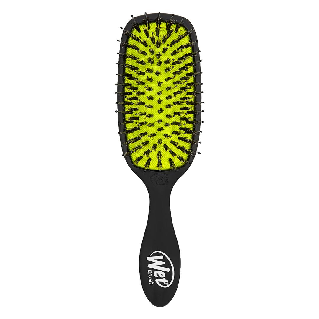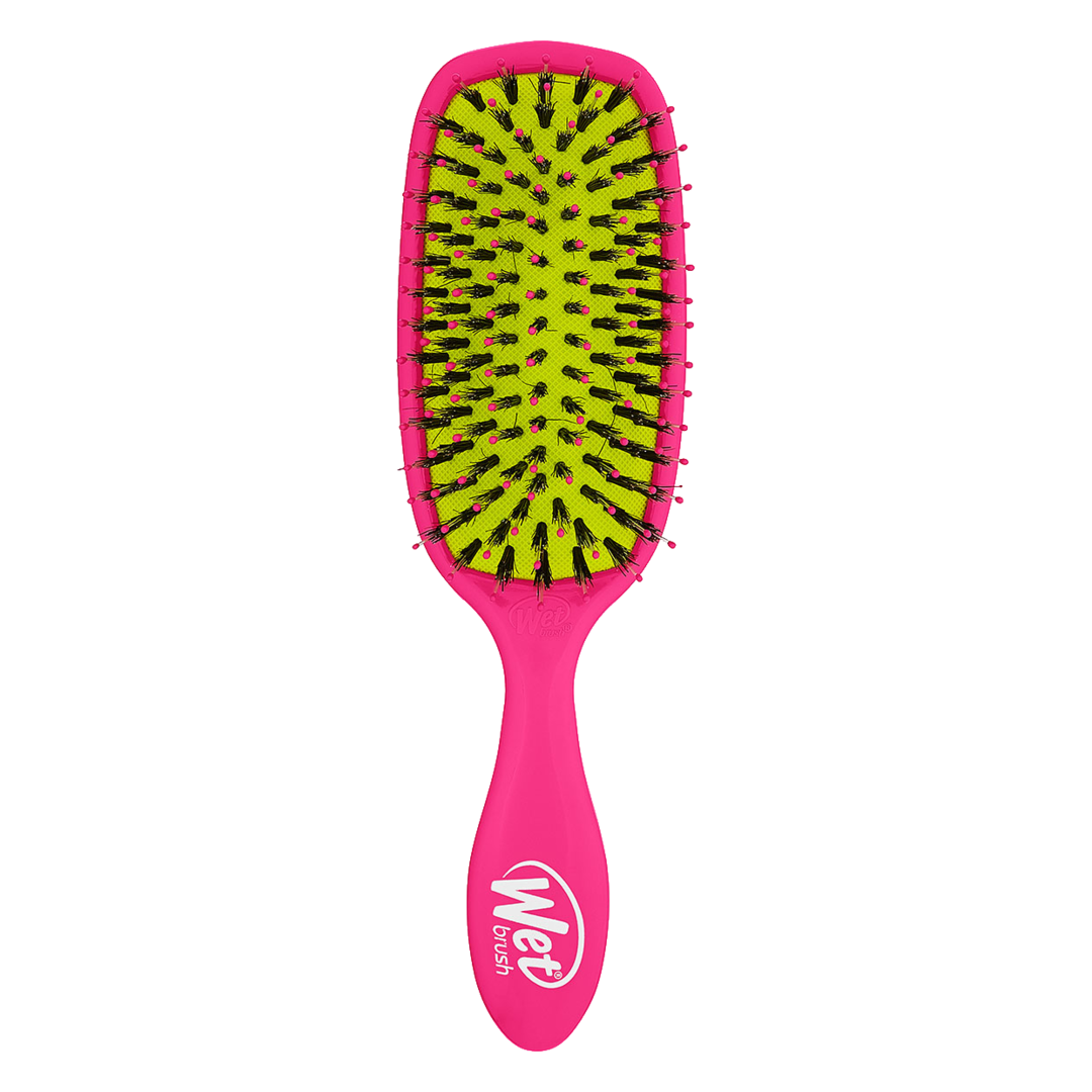 Wet Brush is the No.1 Brand most used and recommended by stylists, it gently detangles your hair bringing out its natural shine. The award-winning design contains 100% natural boar bristles that remove impurties, reduce frizz and distribute your natural oils for a shiny, vibrant and smooth finish. If you're looking to reduce fall out and split ends, the Wet Brush Shine Enhancer's ultra-soft intelliflex bristles glide through your hair with 56% less force to help you reduce breakage by 45%. Remove your tangles with ease and without tugging thanks to the Wet Brush Shine Enhancer's boar bristles that allow for 55% easier brushing.