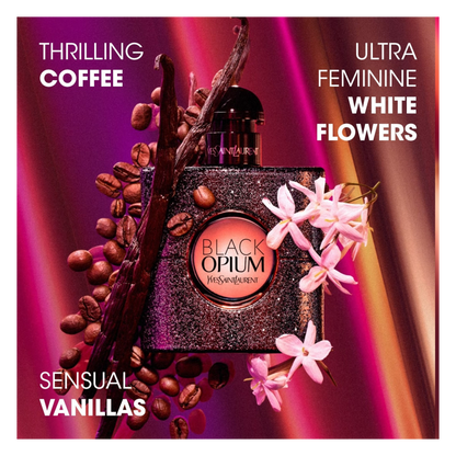 At the heart of Black Opium is an addictive black coffee accord blended with luminous white flowers, the ultimate play of shadow and light. A gourmet dose of vanilla envelops the fragrance in celestial beauty, creating a trail that is indulgent, sensuous and absolutely unforgettable.