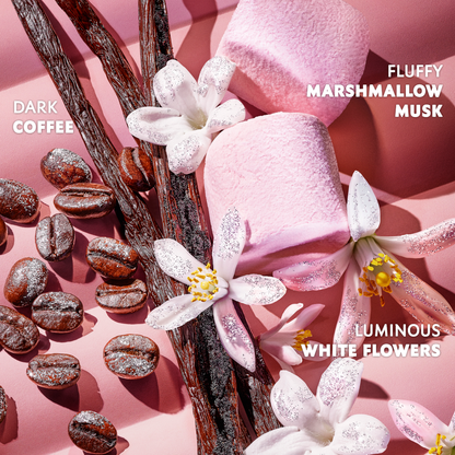 Base notes are Marshmallow Musk Accord, Black Coffee Accord, Vanilla Bourbon Absolu, Patchouli Heart.