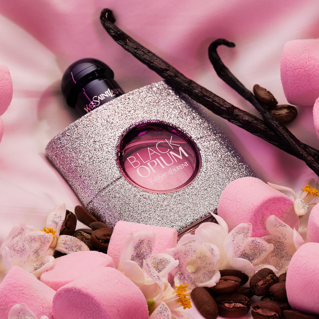 A new, delicious, glittering incarnation of Black Opium. A thrilling indulgence, injecting the most delicious ingredient, marshmallow musk accord into Black Opium’s signature coffee floral accord.