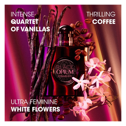 A sensual and delectable spin on the classic Black Opium fragrance, Le Parfum takes its iconic floral-gourmand signature and amplifies its addictive vanilla base note. YSL Le Parfum projects a honeyed freshness from a duo of pear and green mandarin. The heart blooms with white florals, including orange flower petals and jasmine sambac, with a twist of warm cinnamon. To finish, the signature Black Opium coffee accord is perfectly complemented by a quartet of vanilla notes for a creamy, smooth finish that you will keep leaning in for.