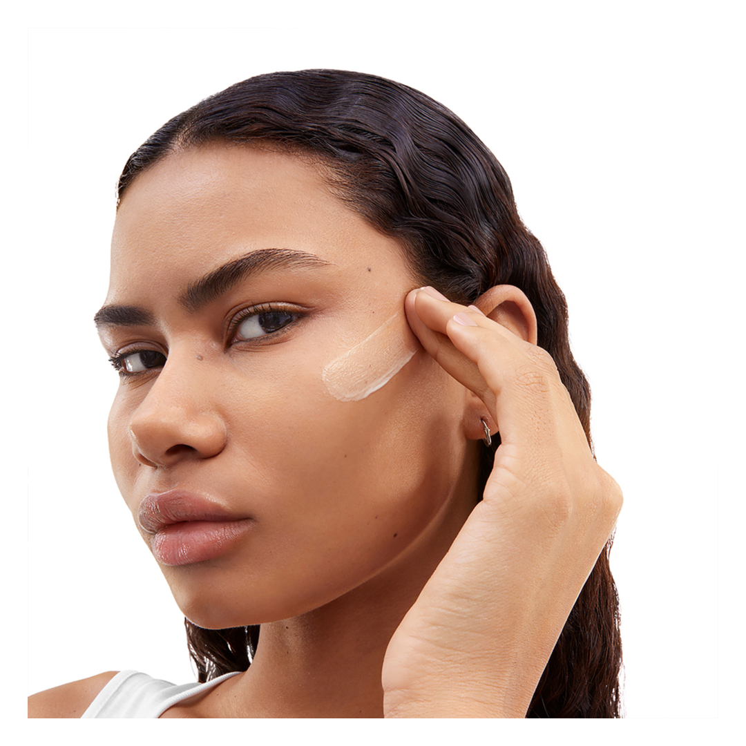 Shake the product well before applying it in the morning as the last step in your skincare routine and before your makeup. Pour seven drops of the formula into the palm of your hand. Dab it on the forehead, cheeks, nose, chin and neck before spreading the texture using one hand from one temple to the other. With two hands, spread the formula on your cheeks and nose, working from the centre of the face outwards and then back again. Finish by applying to the chin and neck.